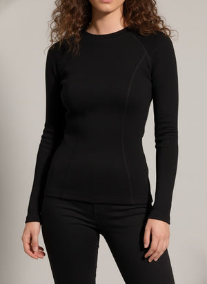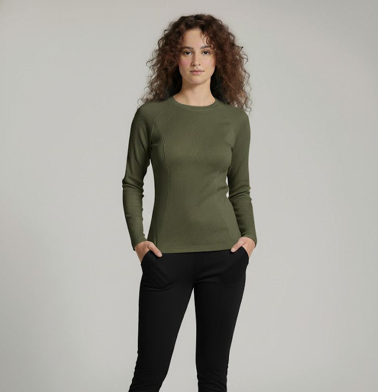 - A women sweatshirt ribbed with a long sleeves and collar.