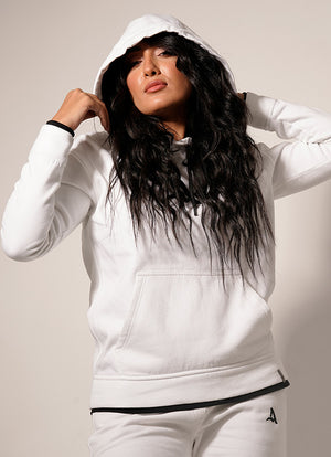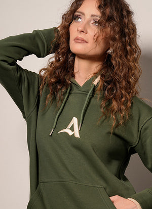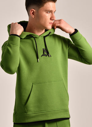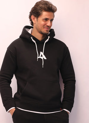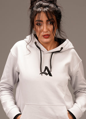 A hoodie with a long sleeves, front pouch pocket, ribbed trims. Embroidered on the face and back. Made of 100% cotton milton fabric (face and back). The inner lining is made of 100% cotton fabric.