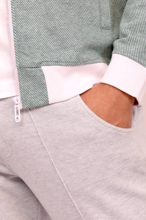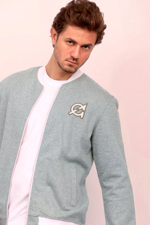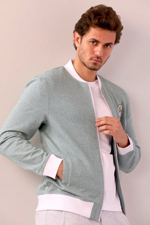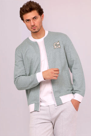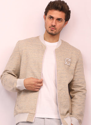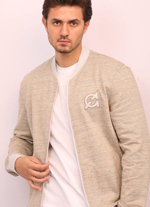 - A jacket with a long sleeves, ribbed trims, zipper in the front and features a logo embroidery appliqué on the chest.